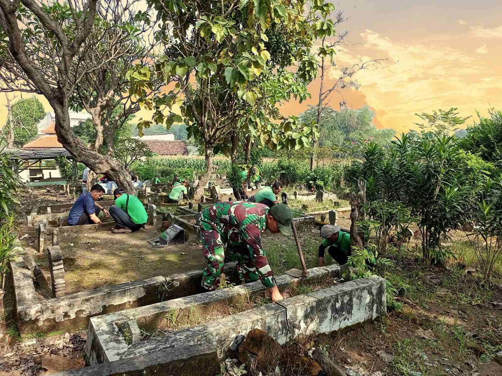 Karya bakti yang dilaksanakan pada pagi hari itu tampak penuh semangat kebersamaan. Para peserta bahu-membahu membersihkan rumput liar, merapikan area sekitar makam, serta memperbaiki bagian-bagian yang sudah tidak tertata. Kehadiran Babinsa bersama karyawan perusahaan menjadi bukti nyata sinergi antara TNI dan pihak swasta dalam mendukung kepentingan masyarakat.