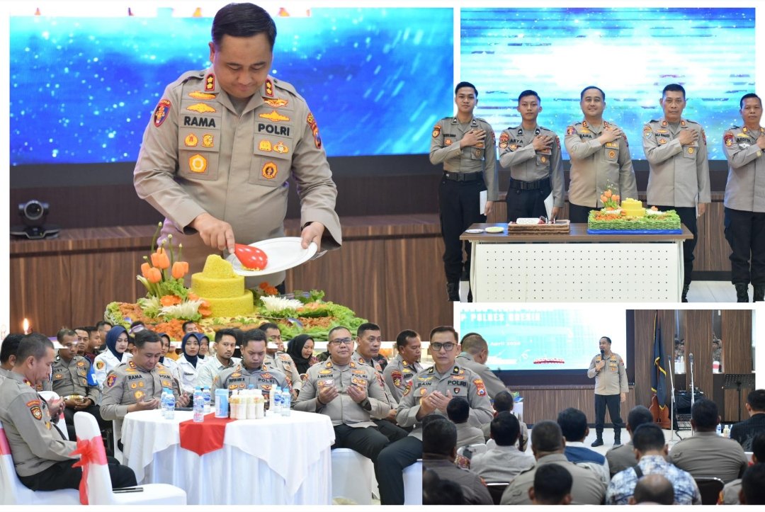 Puncak acara ditandai dengan prosesi pemotongan tumpeng dan kue ulang tahun oleh Kapolres Gresik. Potongan tumpeng kemudian diserahkan secara simbolis kepada personel dengan NRP tertua sebagai bentuk penghormatan atas dedikasi panjang, serta kepada personel dengan NRP termuda sebagai simbol harapan dan regenerasi Polri ke depan.