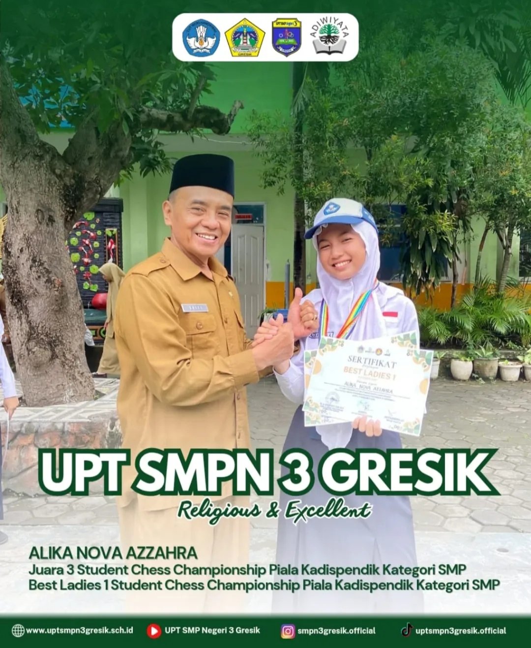UPT SMPN 3 Gresik terus berkomitmen mewujudkan generasi yang Religious &Excellent. Selamat atas prestasinya,teruslah berkarya dan mengharumkan nama sekolah!
