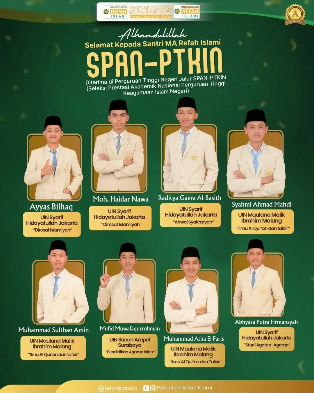 #SPANPTKIN #PrestasiSantri #RefahIslami #SantriBerprestasi #MencetakUlama