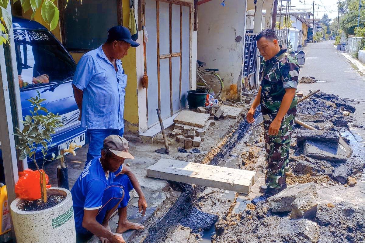 GRESIK, BN News – Dalam rangka mempererat kemanunggalan TNI dengan rakyat, Babinsa Koramil 0817/12 Sidayu, Serda Anry Alberky, melaksanakan kegiatan Karya Bakti dan Komunikasi Sosial (Komsos) bersama warga masyarakat di Desa Sidomulyo, Kecamatan Sidayu, Kabupaten Gresik, dengan membantu proses pemasangan gorong-gorong di lingkungan setempat.