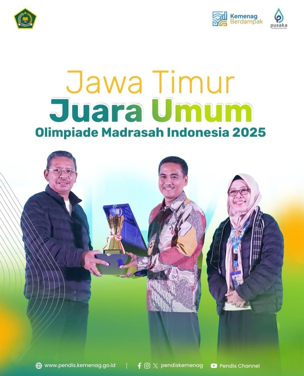 GRESIK, BN News – Gelaran Olimpiade Madrasah Indonesia (OMI) tingkat nasional tahun 2025 resmi ditutup oleh Menteri Agama, Nasaruddin Umar, di Tangerang, Rabu (13/11/2025). Pada ajang yang berlangsung 10–14 November 2025 tersebut, Provinsi Jawa Timur berhasil meraih predikat Juara Umum, mengungguli peserta dari 34 provinsi di seluruh Indonesia.