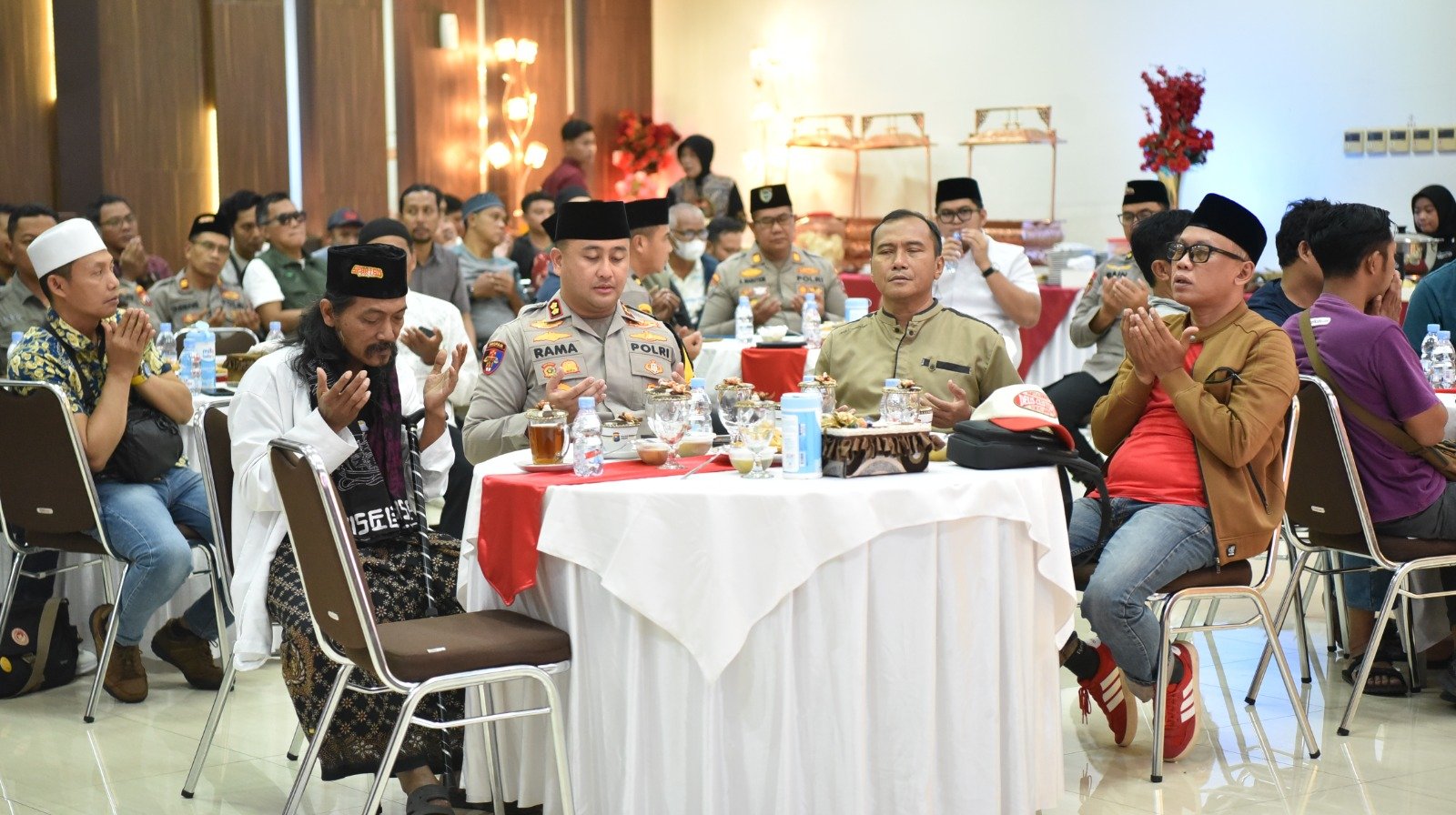 Menjelang waktu berbuka, para tamu undangan mengikuti tausiyah dan doa bersama yang dipimpin KH. Ainur Rofiq Thoyyib. Dalam kultumnya, ia menekankan pentingnya menjaga ukhuwah serta mempererat kebersamaan antar elemen masyarakat demi terciptanya situasi yang aman dan damai.