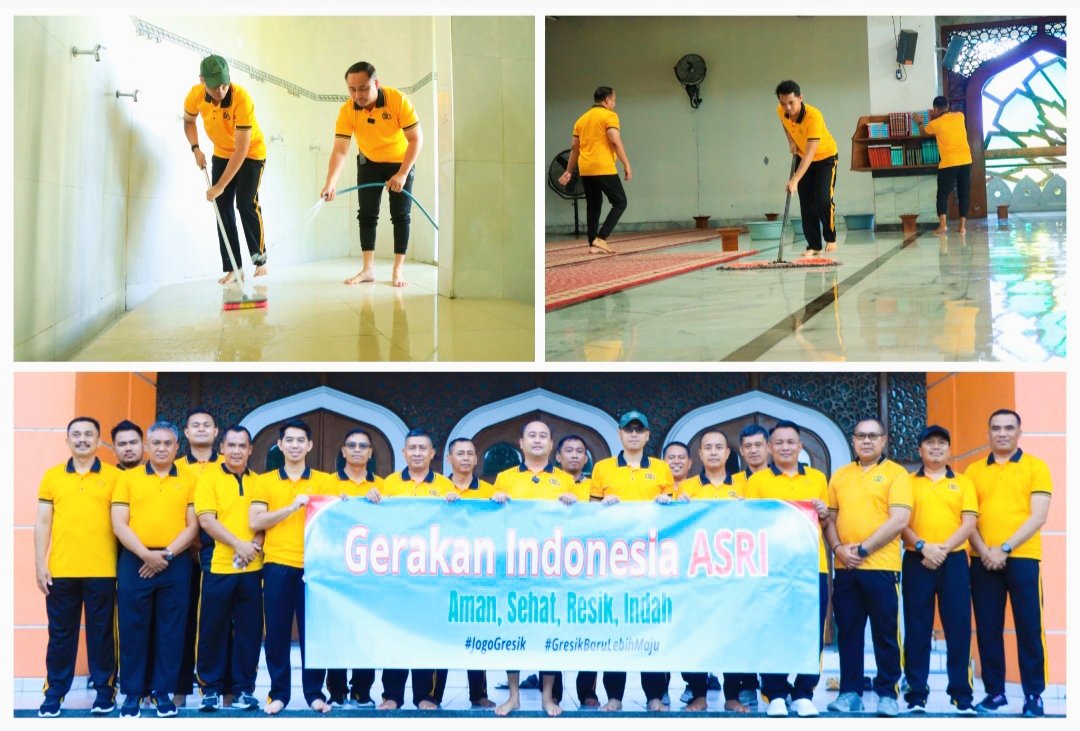 Kegiatan tersebut dipimpin langsung Kapolres Gresik AKBP Ramadhan Nasution, didampingi Wakapolres Gresik Kompol Shabda Purusha Putra serta para Pejabat Utama (PJU). Sekitar 120 personel diterjunkan untuk membersihkan setiap sudut area rumah ibadah, mulai dari halaman, selasar, tempat wudhu, hingga bagian dalam masjid.
