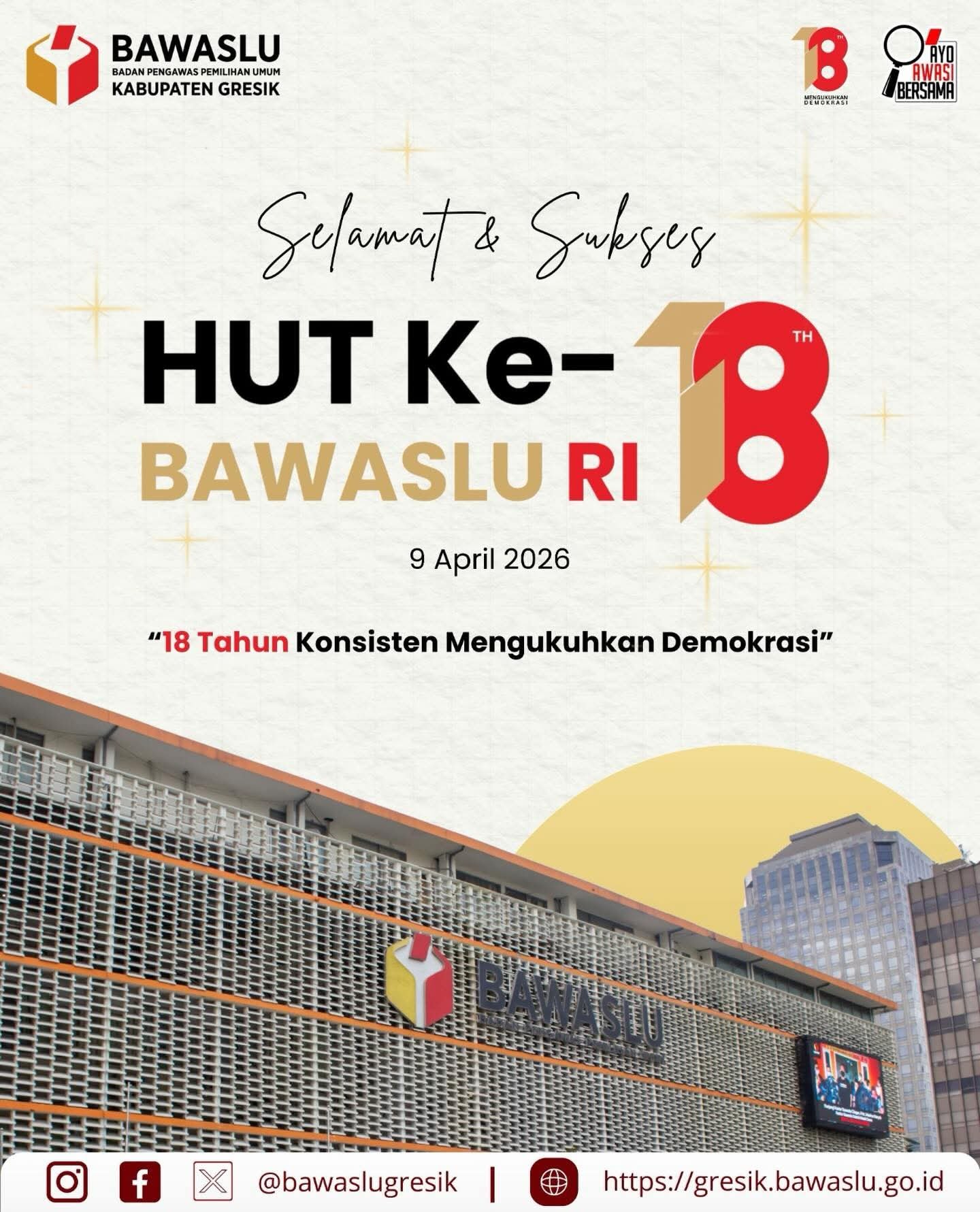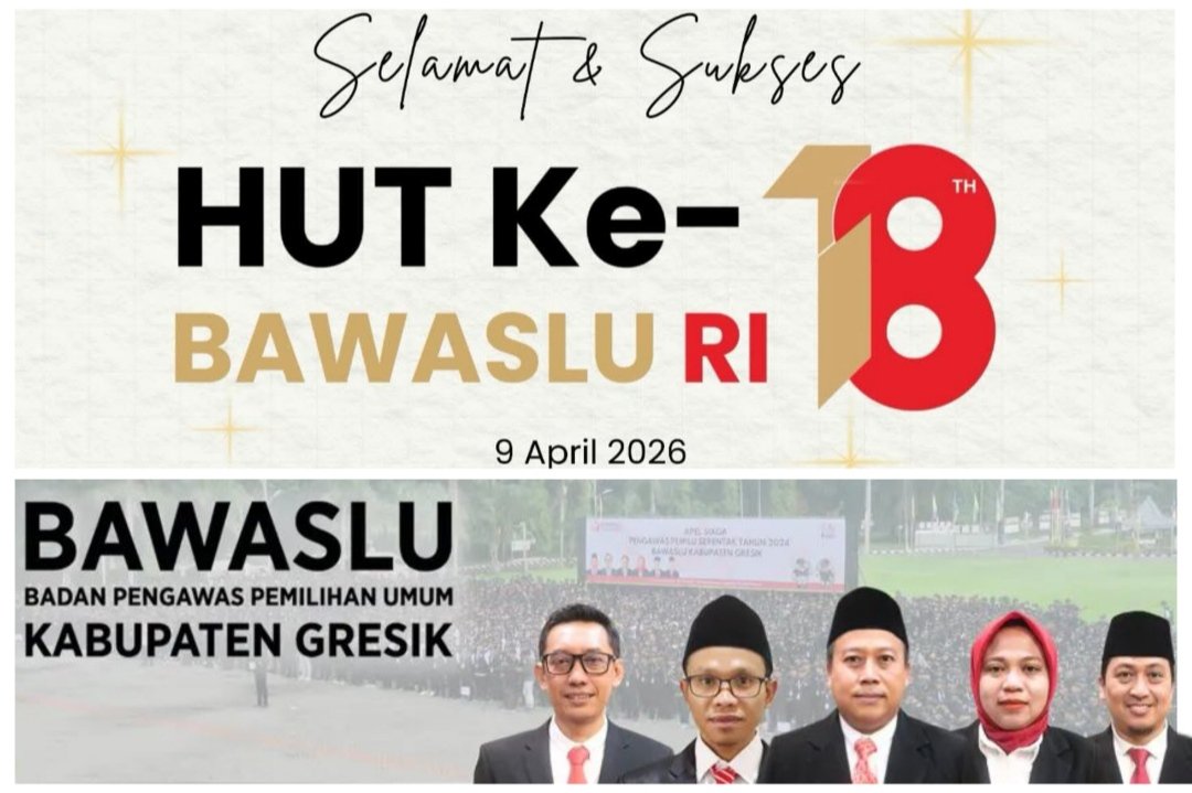 GRESIK, BN News – Keluarga Besar Bawaslu Kabupaten Gresik mengucapkan Selamat HUT ke-18 Bawaslu Republik Indonesia! 🎉
