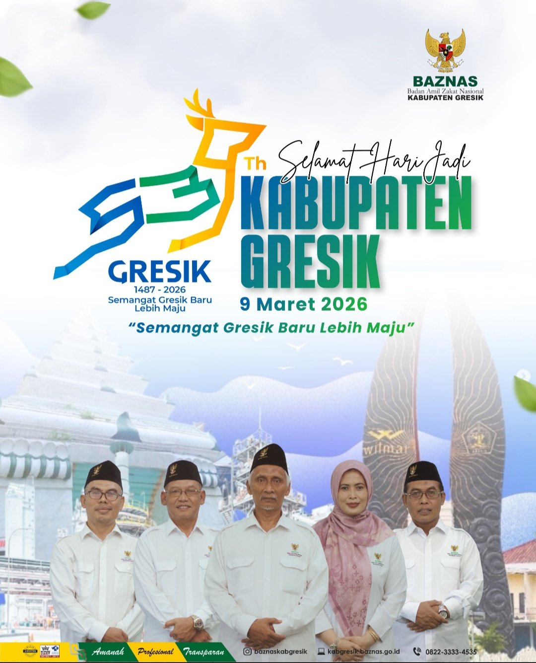 GRESIK, BN News – Keluarga Besar Badan Amil Zakat Nasional (Baznas) Gresik mengucapkan Selamat Hari Jadi ke-539 untuk Kabupaten Gresik.