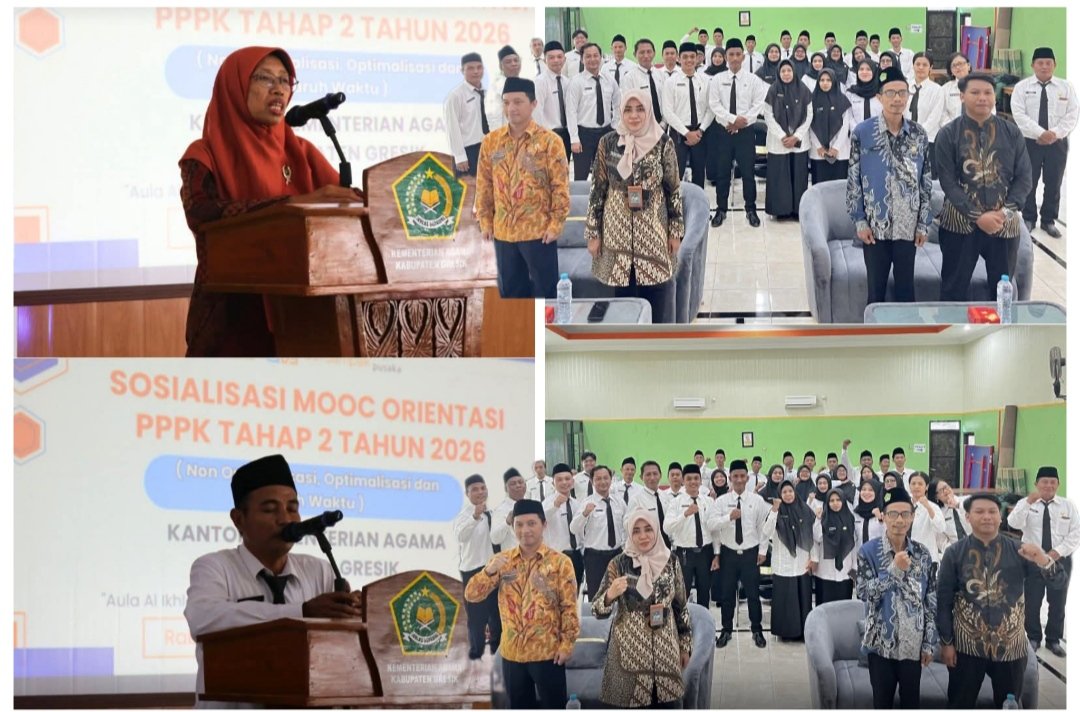 GRESIK, BN News – Peningkatan kualitas pelayanan publik di lingkungan Kantor Kementerian Agama Kabupaten Gresik terus dipacu. Hari ini, Aula Al Ikhlas menjadi saksi semangat ratusan Pegawai Pemerintah dengan Perjanjian Kerja (PPPK) Tahap 2 tahun 2026 yang mengikuti Sosialisasi Massive Open Online Course (MOOC).