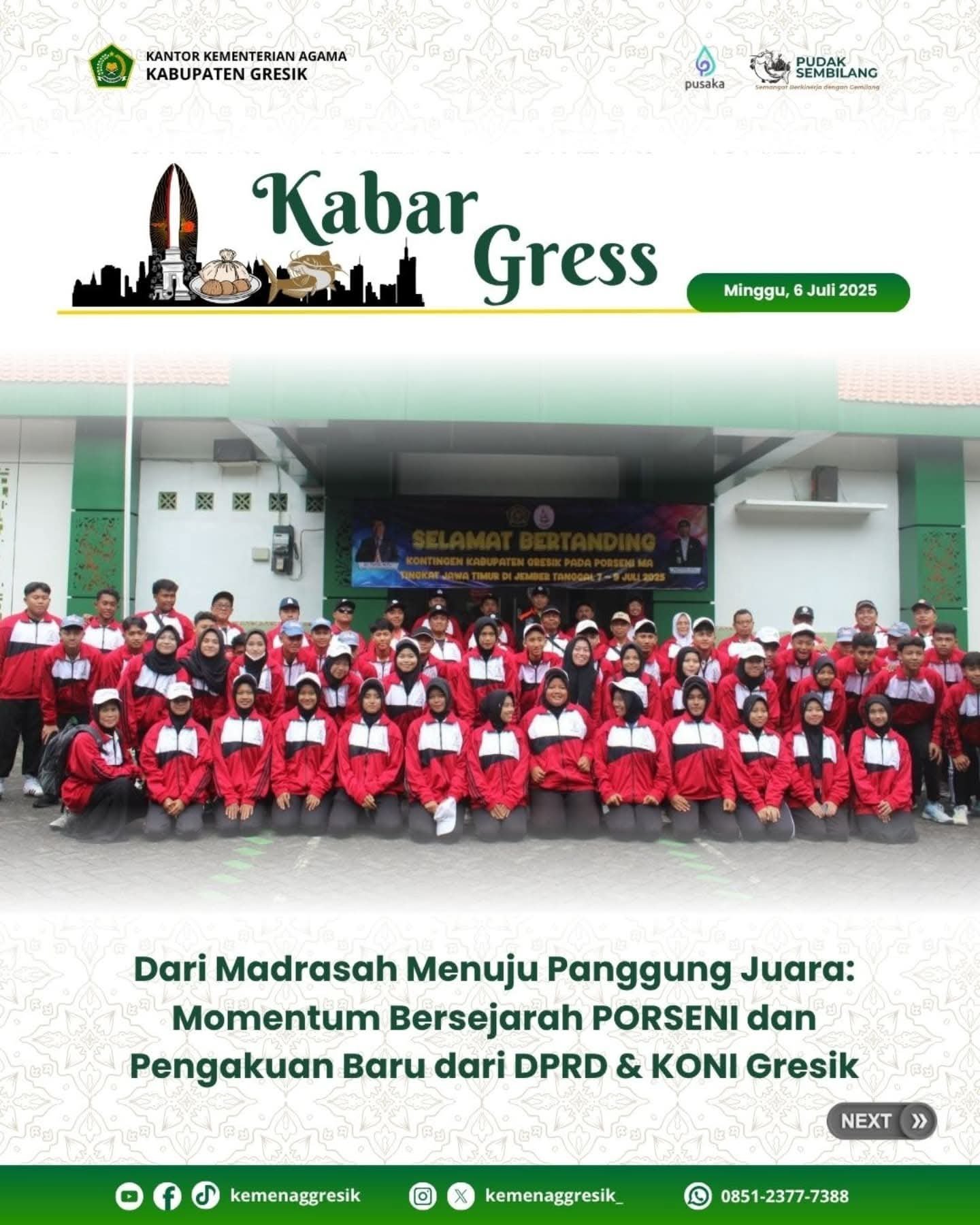 Kini bukan lagi soal berangkat bertanding.Tapi bagaimana Kemenag Gresik menghadirkan