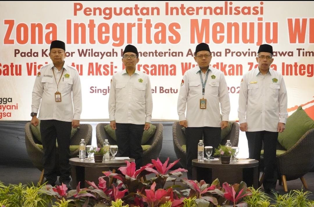 BN News – Dalam upaya berkelanjutan untuk memperkuat integritas dan mewujudkan tata kelola pemerintahan yang bersih, akuntabel, serta bebas dari praktik korupsi, Kantor Wilayah Kementerian Agama Provinsi Jawa Timur menyelenggarakan kegiatan “Penguatan Internalisasi Zona Integritas (ZI) Menuju Wilayah Bebas Dari Korupsi (WBK)” pada Senin s.d Rabu (14–16 Juli 2025).