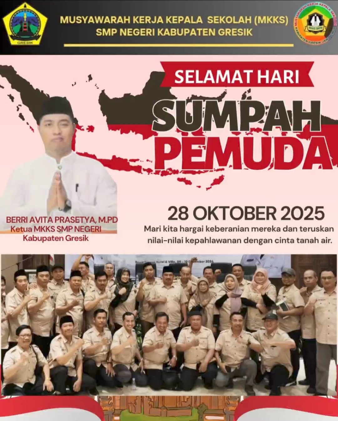 Ketua MKKS SMP Negeri Kabupaten Gresik Ucapkan Selamat Hari Sumpah Pemuda ke-97 Tahun 2025