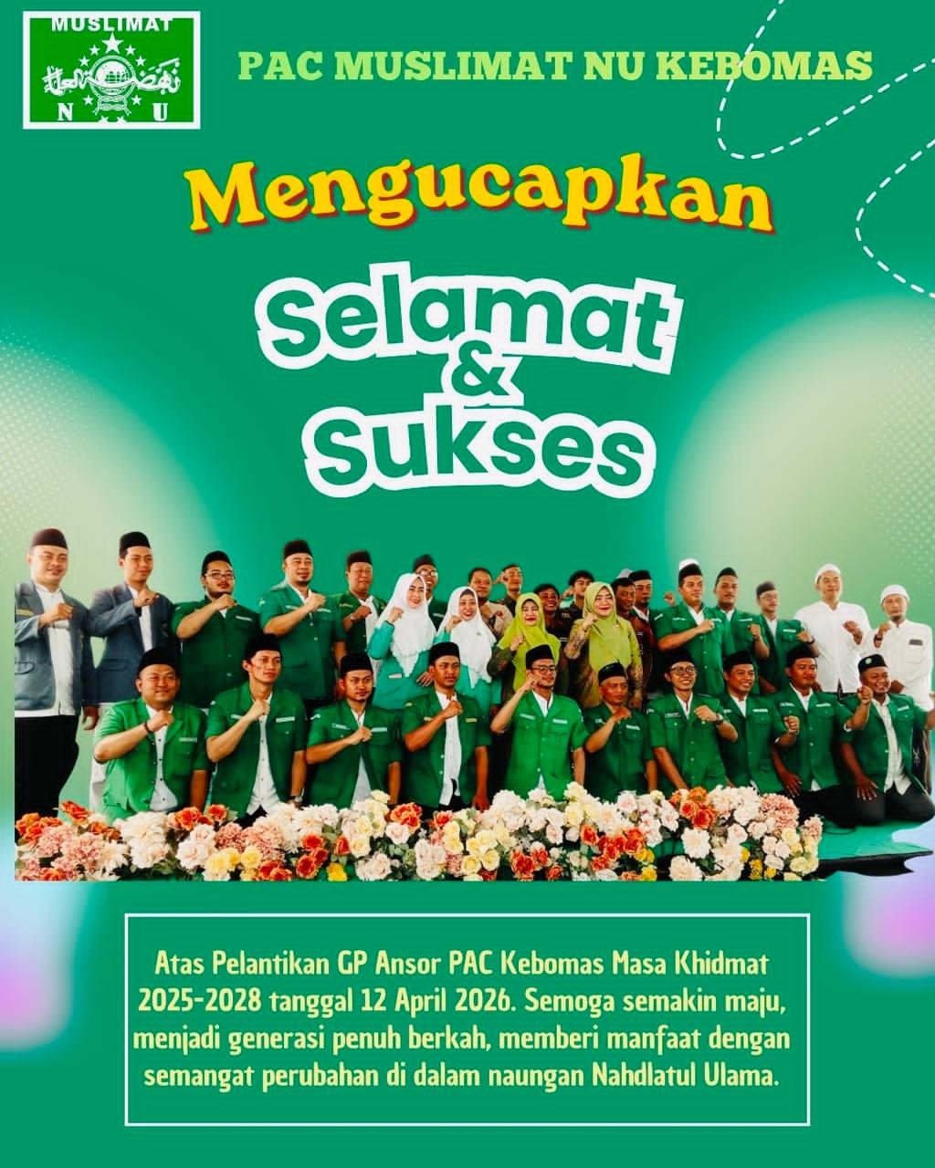 Dengan pelantikan ini, GP Ansor Kebomas diharapkan mampu menghadirkan gerakan yang lebih progresif dan memberikan kontribusi nyata bagi masyarakat luas.