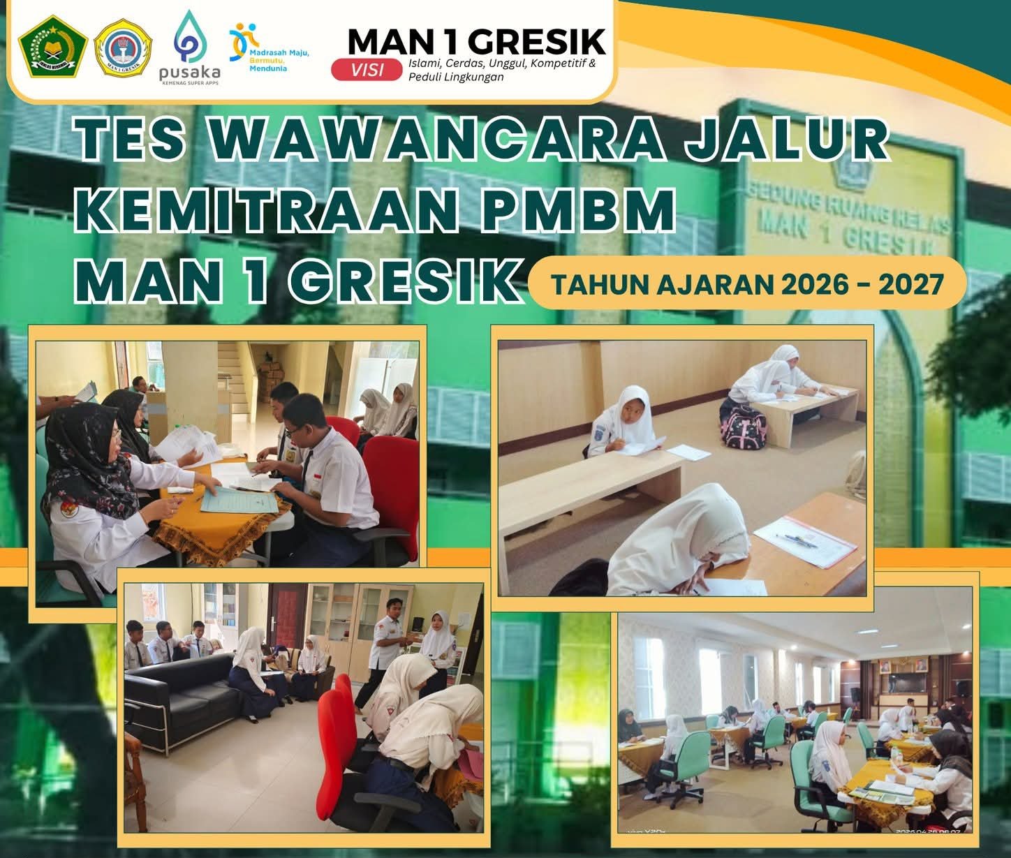 GRESIK, BN News – Pelaksanaan tes wawancara Jalur Kemitraan PMBM (Penerimaan Murid Baru Madrasah) MAN 1 Gresik Tahun Pelajaran 2026/2027 telah berlangsung dengan tertib dan lancar. Sebanyak 92 peserta mengikuti tahapan ini dengan penuh semangat dan antusias, hadir sesuai jadwal yang telah ditentukan sejak pagi hari.
