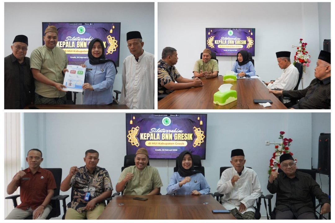 MUI Gresik, BN News – Penguatan edukasi bahaya narkoba berbasis dakwah menjadi komitmen bersama antara Majelis Ulama Indonesia (MUI) Kabupaten Gresik dan Badan Narkotika Nasional (BNN) Kabupaten Gresik dalam silaturrahim yang digelar di Kantor MUI Kabupaten Gresik, Kamis (26/2/2026).