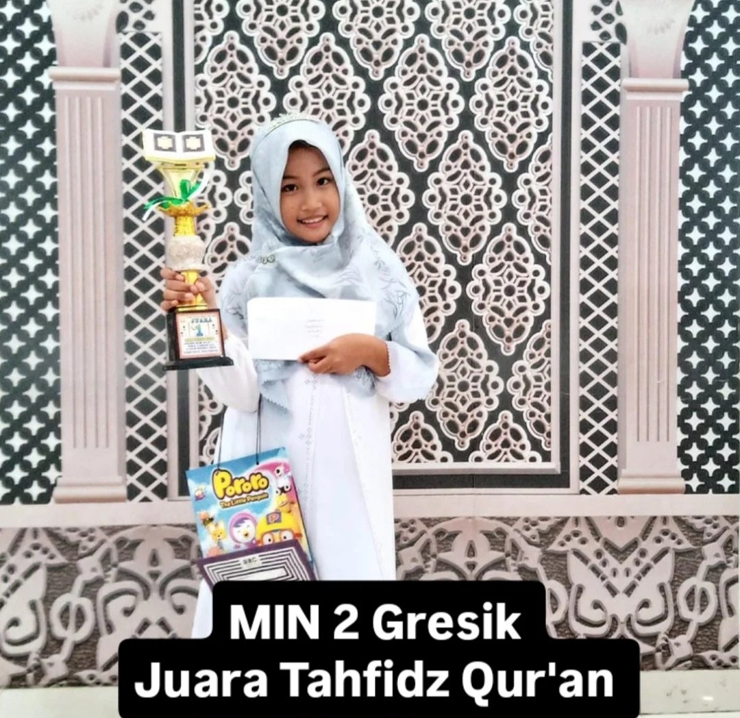 MIN 2 Gresik kelas Il atas Nama Kirana Tanzeela Prima dinobatkan Juara 1 Tahfidz Qur’an pada kegiatan Islamic Festival Tingkat Jawa Timur di Atrium Gressmall Gresik.