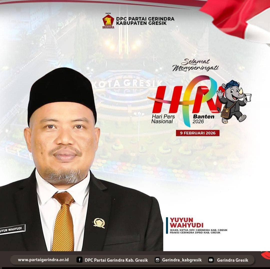 GRESIK, BN News – Wakil Ketua DPC Gerindra sekaligus anggota Fraksi Gerindra DPRD Kabupaten Gresik, Yuyun Wahyudi mengucapkan Selamat dan memberikan penghargaan setinggi-tingginya kepada seluruh insan pers yang setiap hari mengawal informasi yang akurat, berimbang, dan bertanggung jawab.