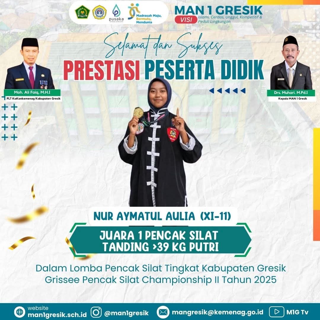 Siswa tersebut bernama Nur Aymatul Aulia. Siswa yang kini tercatat sebagai siswa kelas XI-11 tersebut berhasil menjadi yang terbaik dalam Kejuaraan Grisse Pencak Silat Championship kelas Under 39 KG Se-Gresik. Bertanding di kelas Under 39 Kg, ia berhasil menumbangkan para pesaingnya hingga mampu menjadi yang terbaik.