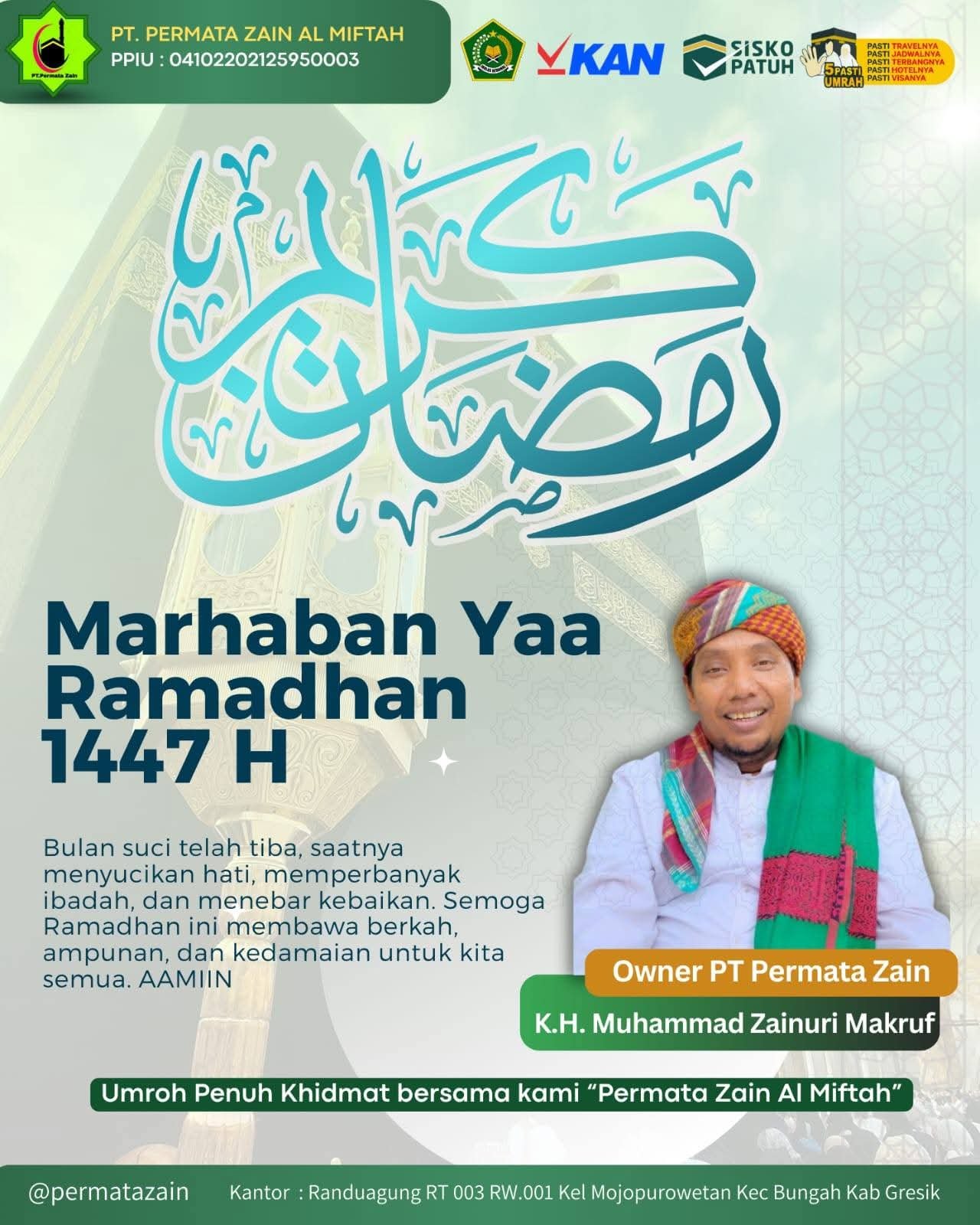 ampunan, dan kedamaian untuk kita semua. Selamat menyambut bulan suci Ramadhan. Semoga Allah SWT menjadikannya sebagai bulan penuh keberkahan dan ladang pahala bagi kita semua. AAMIIN,” ucap Owner PT Permata Zain KH. Muhammad Zainuri Makruf, Selasa (17/2/2026). (Telisik Hati)