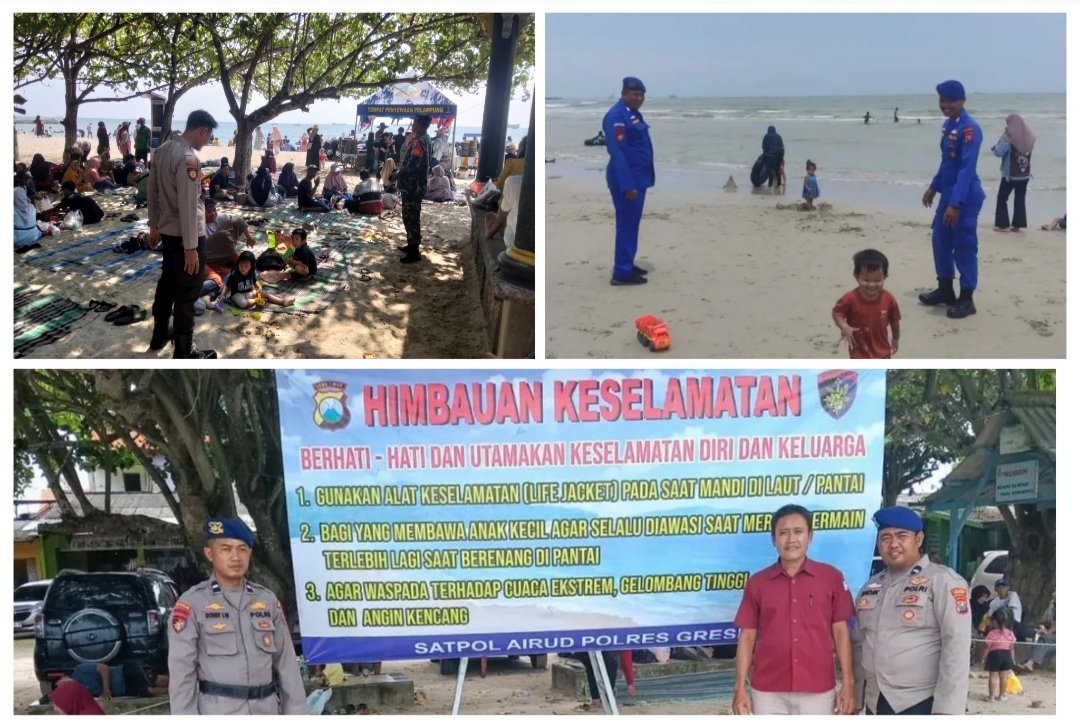 GRESIK, BN News — Dalam rangka menciptakan rasa aman dan nyaman bagi masyarakat serta pengunjung objek wisata, Babinsa Koramil 0817/14 Panceng Sertu Siswo bersama anggota Polsek Panceng dan Satpolairud Polres Gresik melaksanakan kegiatan patroli pengamanan di kawasan Wisata Pasir Putih (WPP) Desa Dalegan, Kecamatan Panceng, Kabupaten Gresik, Minggu (18/1/2026).
