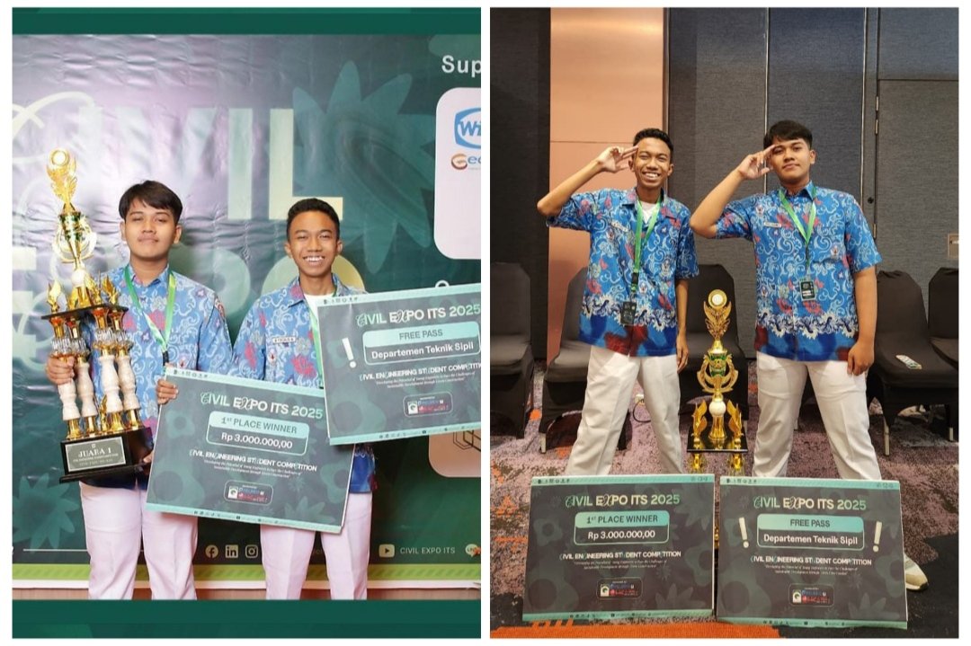 GRESIK, BN News – Prestasi gemilang berhasil diraih oleh dua siswa SMA Negeri 1 Manyar, Zikral Rabbani Sosiawan dan M. Firdaus Wibowo, yang sukses meraih juara dalam kompetisi Civil Engineering Student Competition 2025 yang diselenggarakan oleh Departemen Teknik Sipil Institut Teknologi Sepuluh Nopember (ITS). Kompetisi ini dikenal sebagai ajang bergengsi yang menguji kemampuan peserta dalam menganalisis, merancang, serta memecahkan permasalahan di bidang teknik sipil.