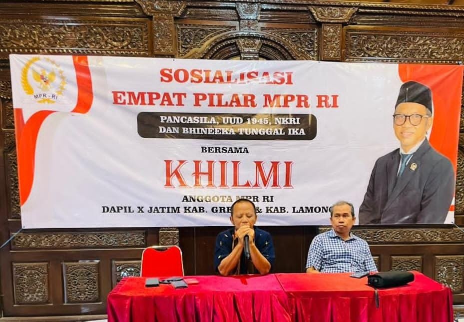 GRESIK, BN News – H Khilmi Anggota DPR/MPR RI dapil X Jatim (Gresik-Lamongan) kembali menggelar Sosialisasi 4 Pilar MPR RI (Pancasila, UUD 1945, NKRI, Bhinneka Tunggal Ika). Sosialisasi 4 Pilar kali ini digelar bersama para pelaku UMKM Gresik di Resto & Coffe Dlagoon, Selasa (10/2/2026).