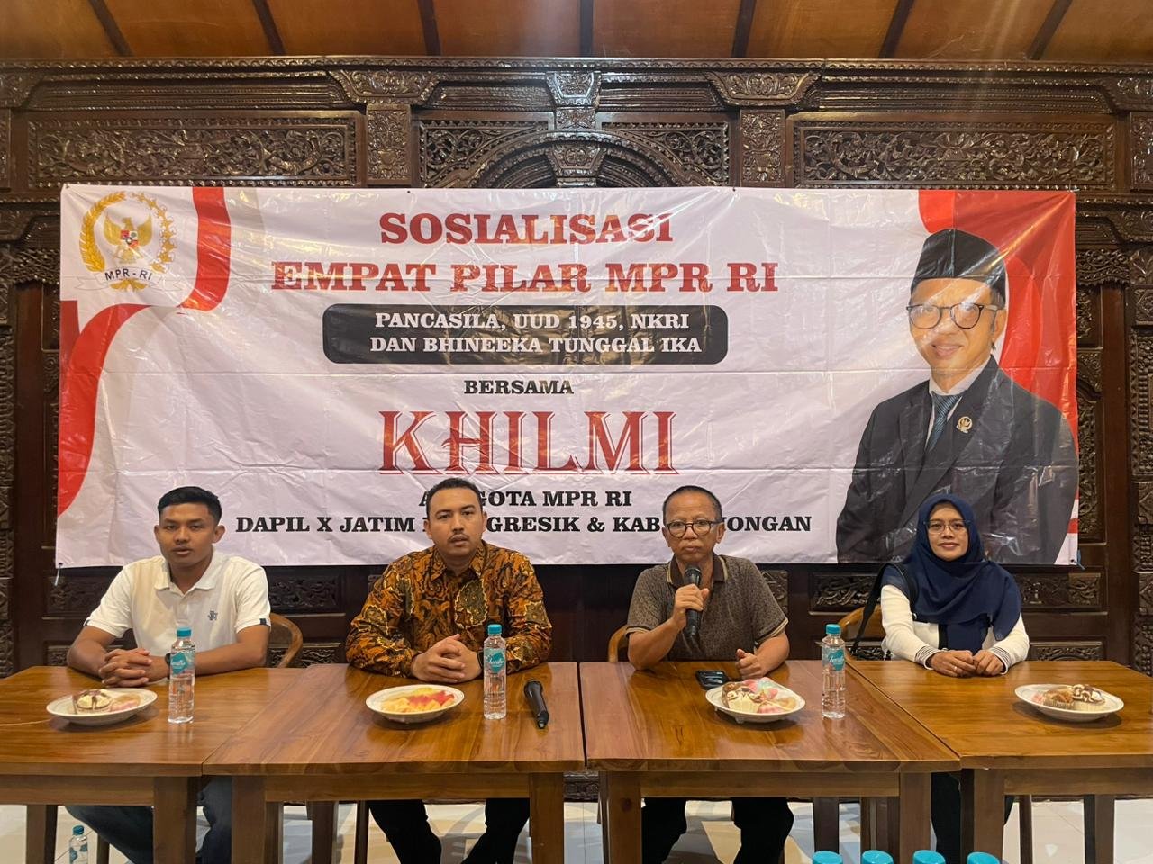 GRESIK, BN News – H Khilmi Anggota DPR/MPR RI dapil X Jatim (Gresik-Lamongan) kembali menggelar Sosialisasi 4 Pilar MPR RI (Pancasila, UUD 1945, NKRI, Bhinneka Tunggal Ika). Sosialisasi 4 Pilar kali ini digelar bersama masyarakat Gresik Maju di Pawon Joglo Ngipik, Selasa, 17 Maret 2026 pukul 18.00 WIB – Selesai.