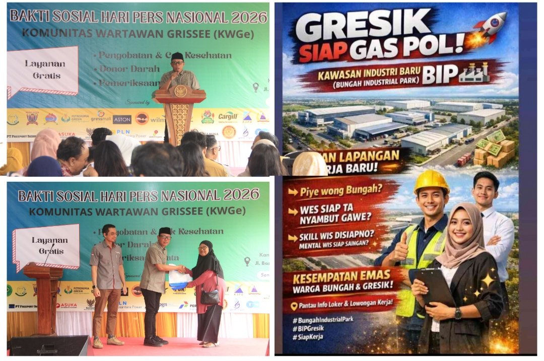 GRESIK, BN News – PT. Bungah Industrial Park (BIP) memberikan dukungan penuh terhadap seluruh rangkaian kegiatan yang digelar Komunitas Wartawan Grissee (KWGe) dalam rangka memperingati Hari Pers Nasional (HPN) 2026. Dukungan tersebut tidak terlepas dari komitmen perusahaan dalam memberikan dampak positif serta membangun sinergitas dengan seluruh kalangan dan lapisan masyarakat.