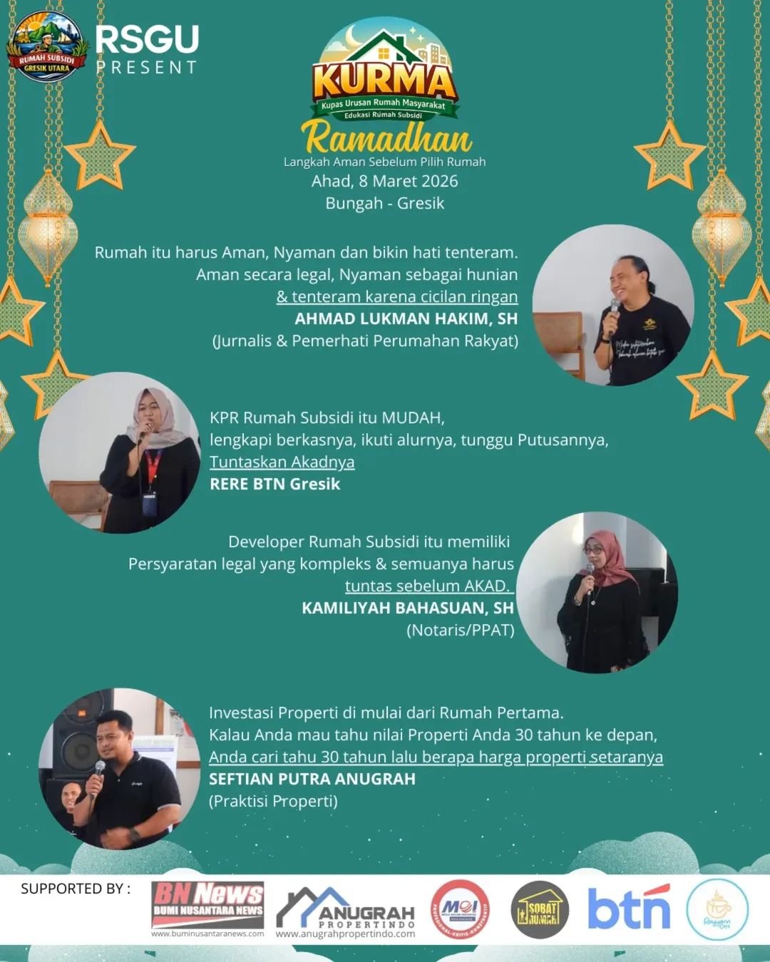 GRESIK, BN News – Alhamdulilah, di Bulan Suci Ramadan yang bergelimang berkah, Tim Rumah Subsidi Gresik Utara (RSGU) kian semangat menyukseskan Program Presiden Prabowo membantu masyarakat memiliki rumah sendiri dengan harga murah, aman, dan nyaman.