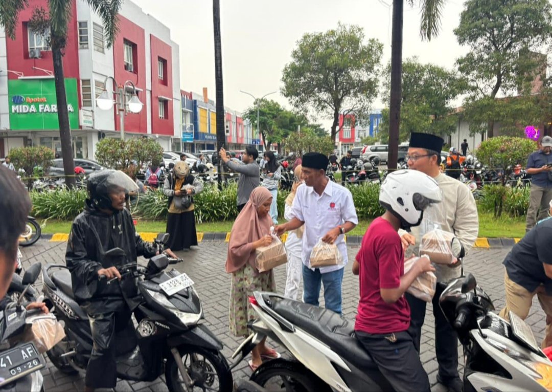 GRESIK, BN News – Kepedulian dan empati sosial benar-benar ditunjukkan oleh Real Estate Indonesia (REI) Komisariat Gresik. Di bawah Komando Ketua Gagah Purna Ujiato dan Wakil Ketua H. Yazid, REI Gresik membagikan seribu paket takjil secara serentak kepada masyarakat di Jalan Wahidin Sudirohusodo depan Icon Mall Gresik, Selasa (3/3/2026).