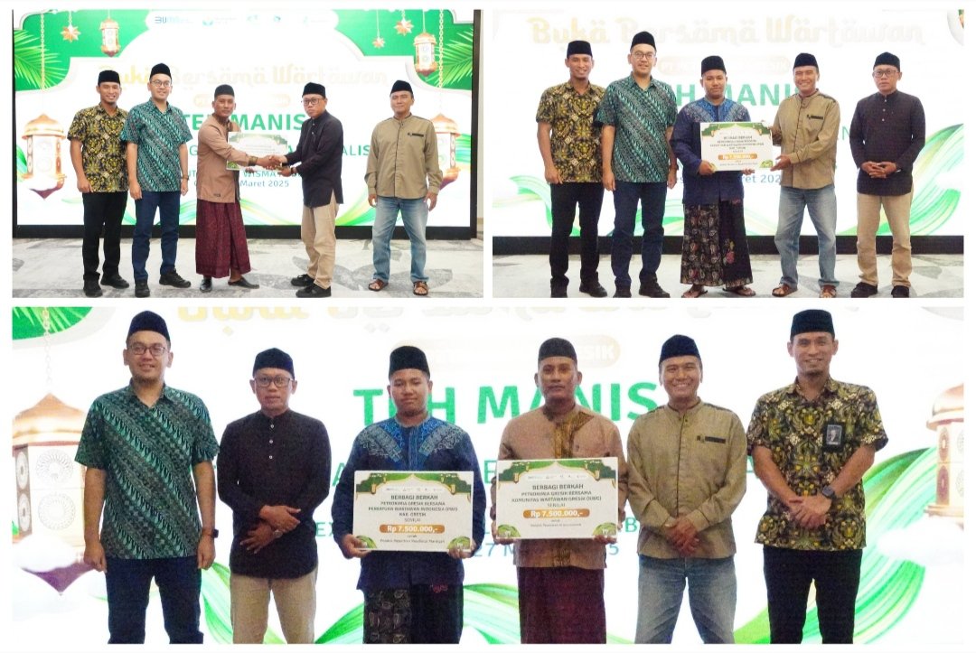 BN News – Petrokimia Gresik, perusahaan Solusi Agroindustri anggota holding Pupuk Indonesia berkolaborasi dengan Persatuan Wartawan Indonesia (PWI) Kabupaten Gresik dan Komunitas Wartawan Gresik (KWG) berbagi berkah untuk pondok pesantren (ponpes) tahfidz quran yang ada di sekitar perusahaan. Bantuan diserahkan dalam kegiatan buka puasa bersama dengan tajuk “TEH MANIS” (Temu Hangat Bersama Jurnalis) di Gresik, Jawa Timur, baru-baru ini.