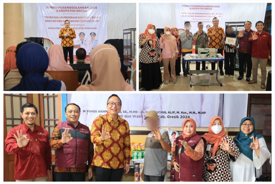 Hal itu disampaikan Wabup Alif saat menghadiri kegiatan penerimaan Program Bantuan Sosial bagi orang dengan HIV tahun 2026 di Kabupaten Gresik, Kamis (12/03). Dalam kegiatan tersebut, 16 penerima manfaat menerima bantuan vokasional usaha dari Kementerian Sosial Republik Indonesia melalui Sentra Margo Laras.