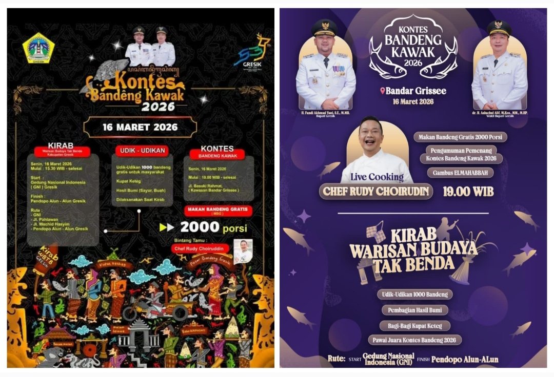 GRESIK, BN News – Pemkab Gresik bakal menggelar Kontes Bandeng Kawak 2026 sebagai bagian dari tradisi tahunan Pasar Bandeng. Selain lomba bandeng berukuran besar, acara juga akan dimeriahkan kirab budaya serta pembagian bandeng gratis kepada masyarakat.