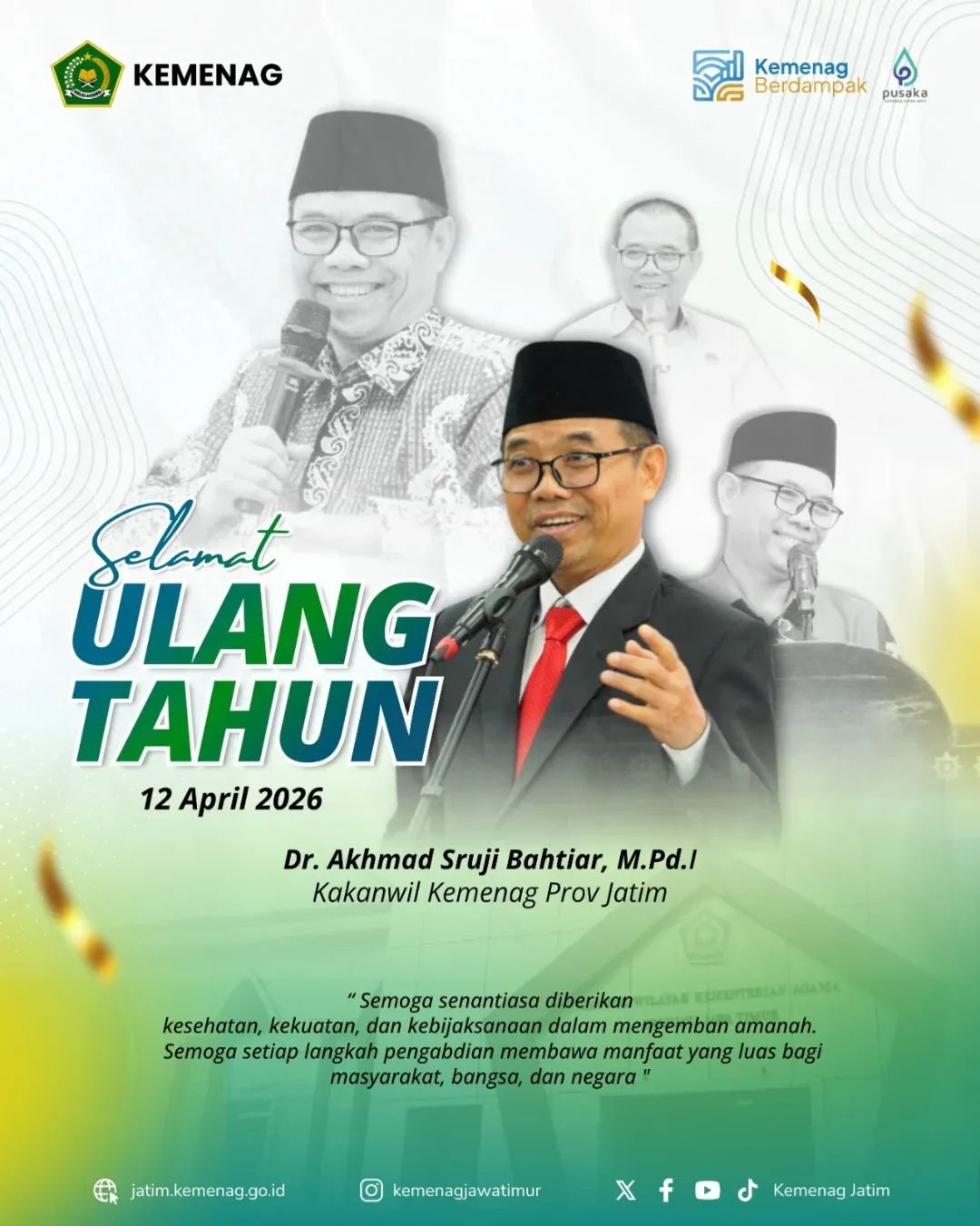 Selamat Ulang Tahun kepada Dr. H. Akhmad Sruji Bahtiar, M.Pd.I (Kepala Kantor Wilayah Kementerian Agama Provinsi Jawa Timur).