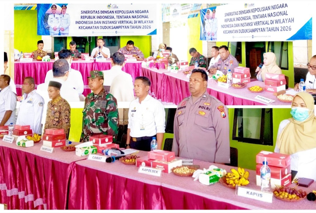 Dalam sambutannya, Camat Duduksampeyan menegaskan pentingnya sinergitas antar instansi guna menjaga stabilitas wilayah serta mendukung program pembangunan daerah. Ia menyampaikan bahwa kolaborasi antara pemerintah kecamatan, TNI, Polri, dan instansi terkait merupakan kunci dalam menciptakan situasi yang aman dan kondusif.