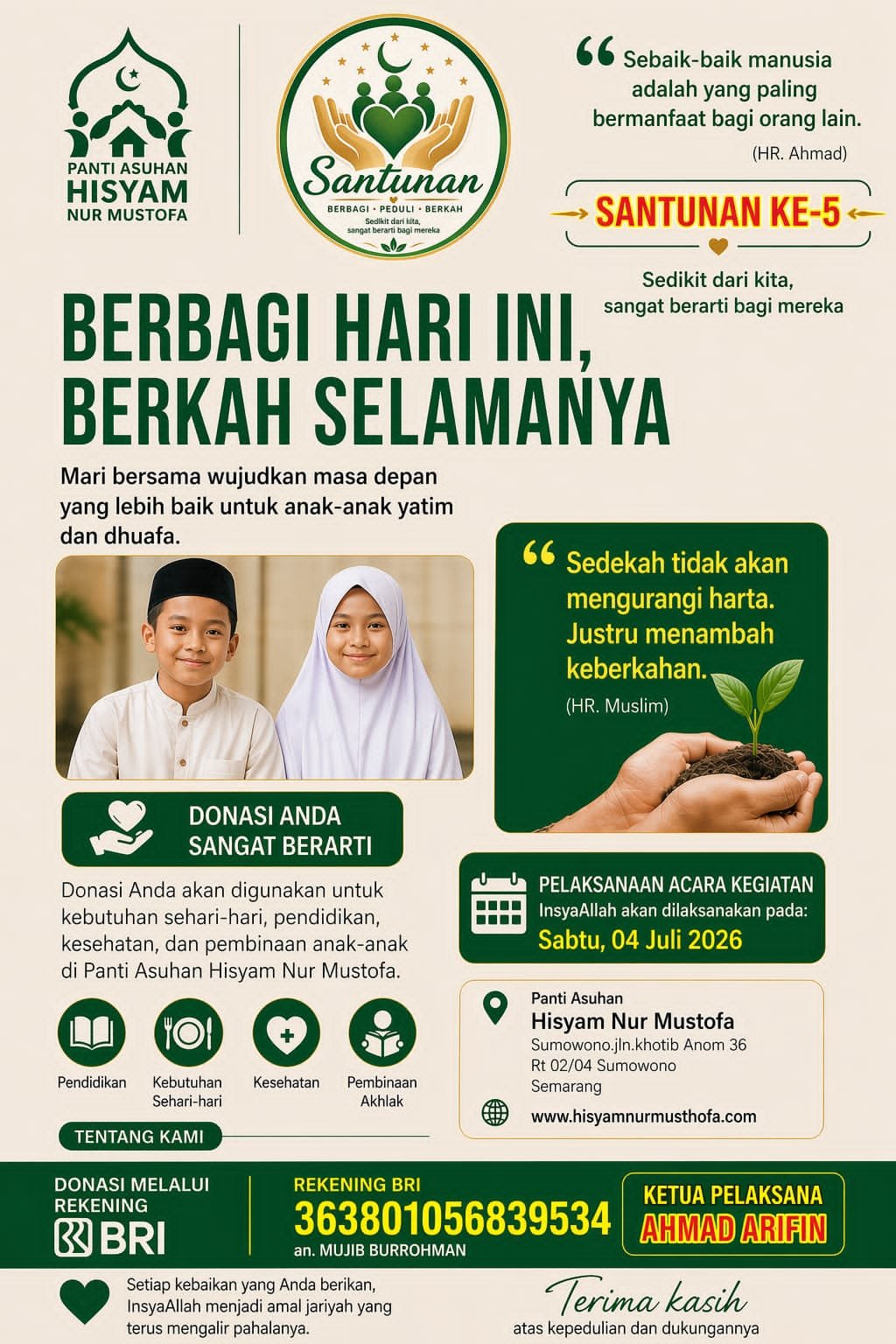 GRESIK, BN News – Jelang persiapan giat santunan anak Yatim dan Faqir SMA A Wahid Hasyim Tebuireng Jombang di momen Muharram 1447 H saling berbenah. Setelah usai kegiatan Halal BI Halal dan Silaturrahmi tahun 2026 di Aula PG Tjoekir kini SMA Awh 92 tancap gas mempersiapkan Giat sosial yakni santunan Yatim Piatu dan Faqir Insyaallah akan dilaksanakan Sabtu, 4 Juli 2026 di Panti Asuhan Hisyam Nur Musthofa Sumowono Semarang Jateng, Rabu (22/04/2026).