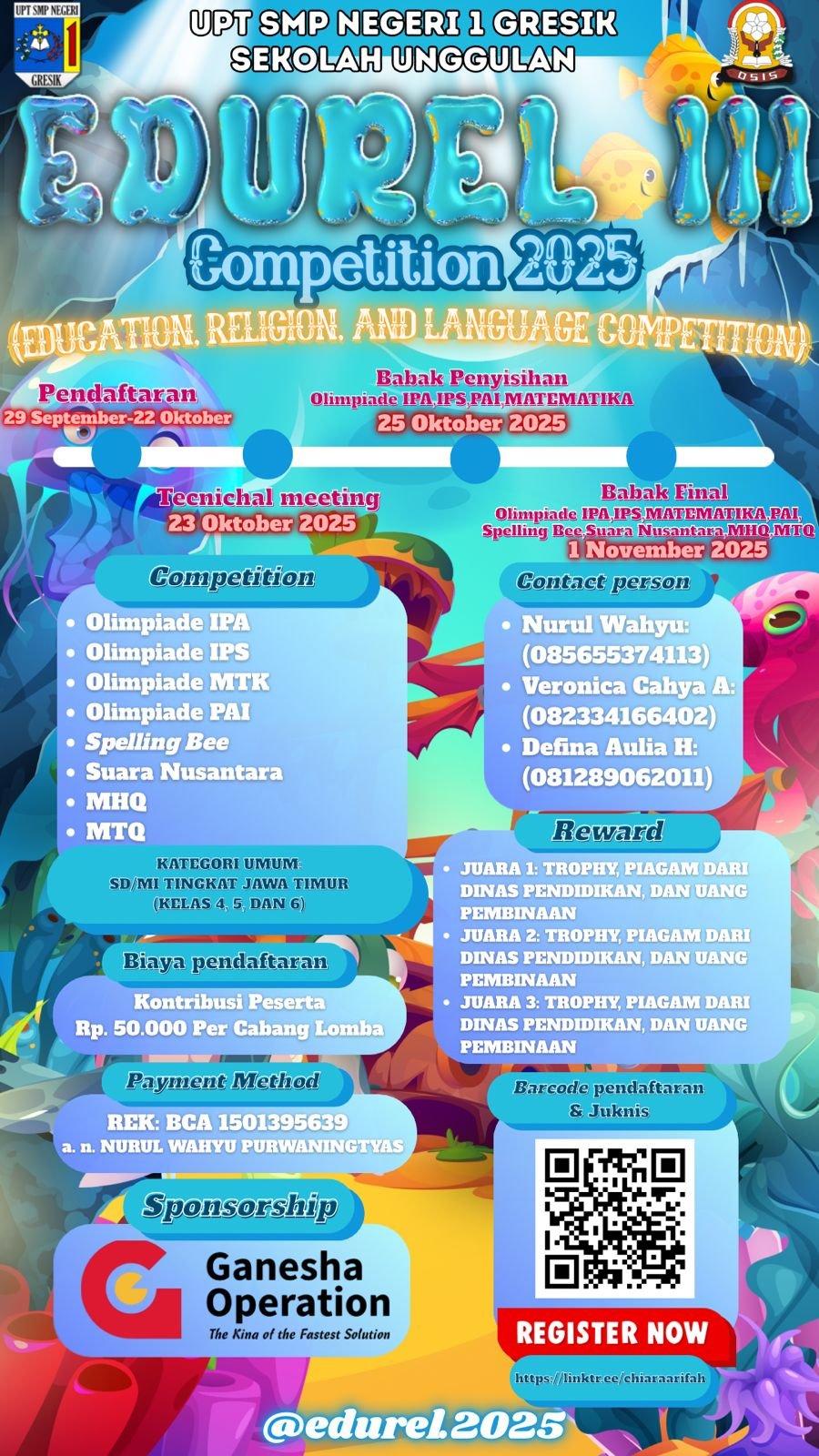 Dan Sabtu kemarin, 25 Oktober 2025 merupakan Babak Penyisihan bagi peserta Edurel III Competition 2025, khususnya bagi peserta Olimpiade IPA, IPS, PAI, dan Matematika.