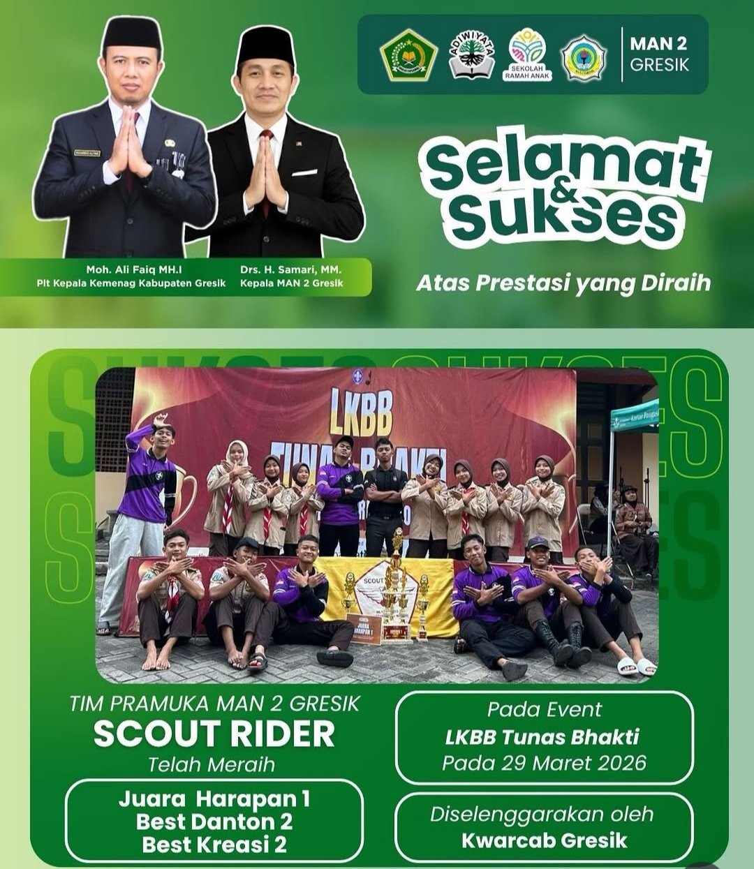 Capaian ini menjadi bukti nyata kedisiplinan, kekompakan, dan kreativitas tinggi yang dimiliki oleh anggota Pramuka MAN 2 Gresik di tingkat kabupaten.
