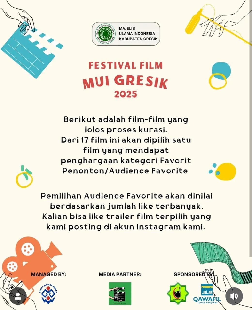 Informasi lengkap mengenai Festival Film Pendek MUI Gresik, bisa langsung membuka instagram @ffmui_gresik. (is/cm)