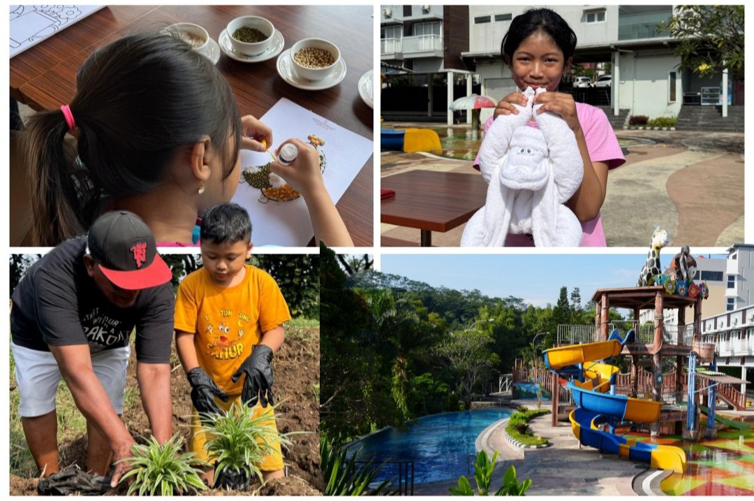 Pengalaman unik lainnya juga hadir melalui Little Farmer, di mana anak-anak diajak mengenal alam lebih dekat dengan berkebun langsung di area resort. Selain itu, melalui Little Housekeeper, anak-anak dapat belajar membuat animal towel art yang lucu dan menarik, sebuah pengalaman sederhana namun penuh kesan.